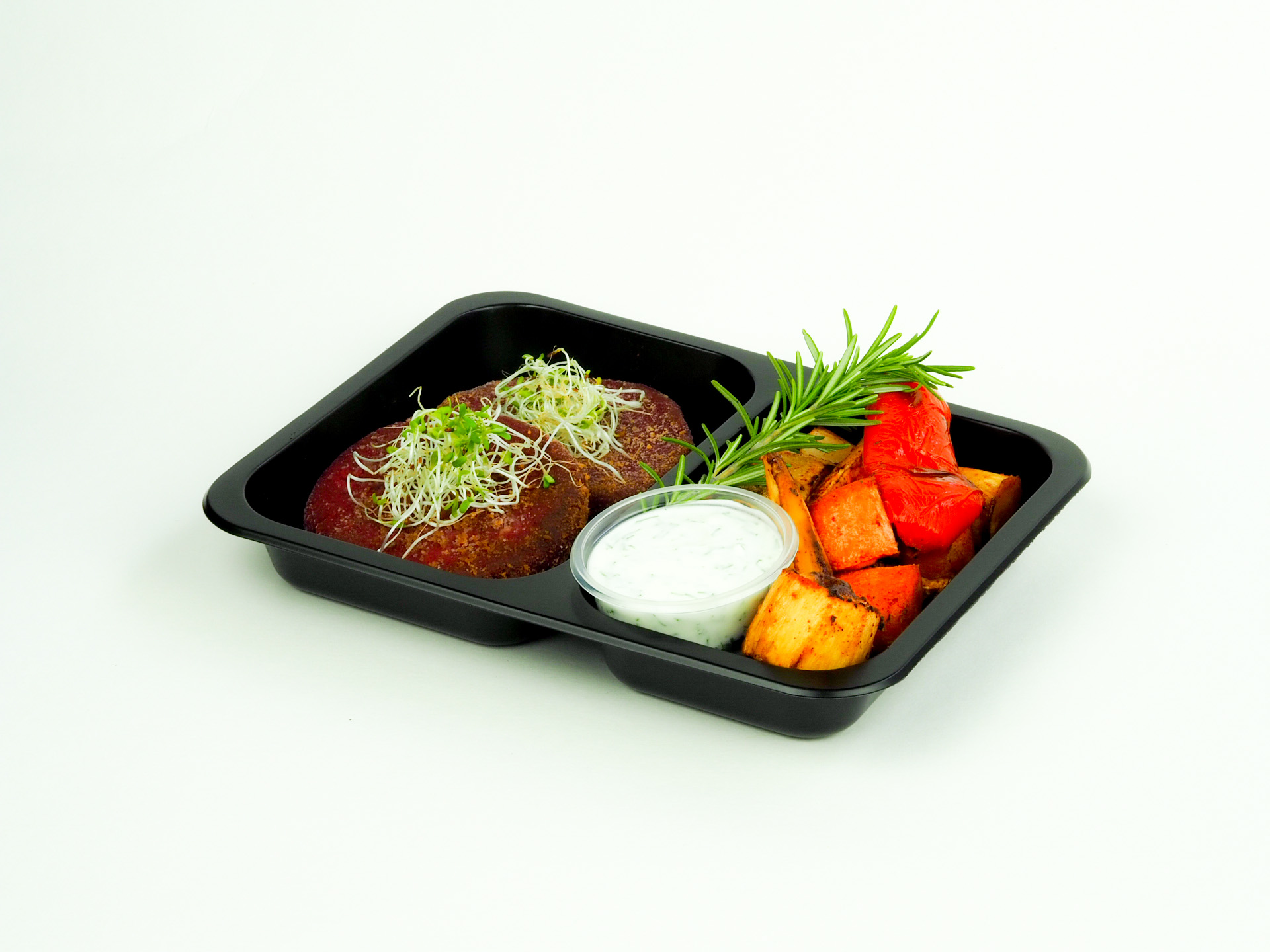 Kotlet z buraka, ziemniaki, bukiet warzyw