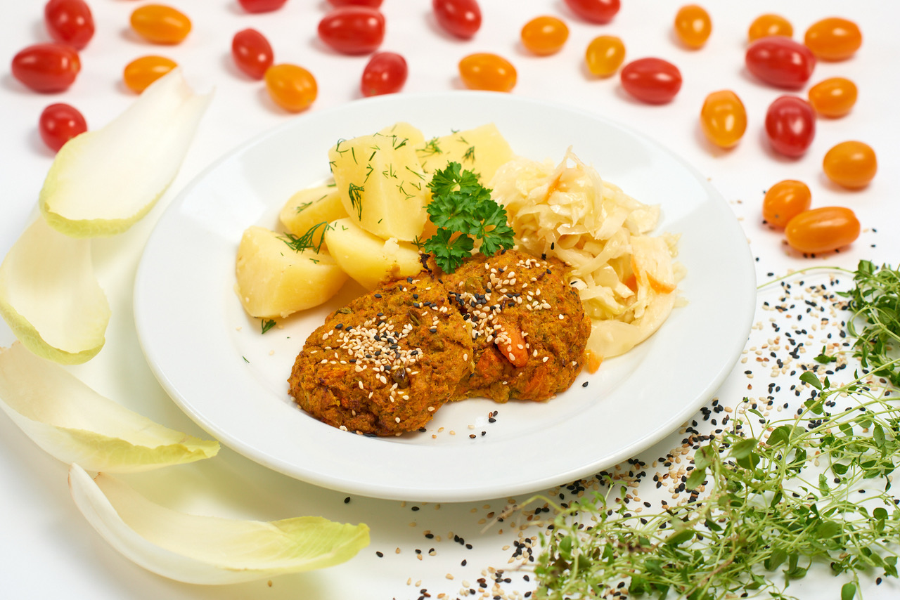Kotlet warzywny, ziemniaki, warzywa