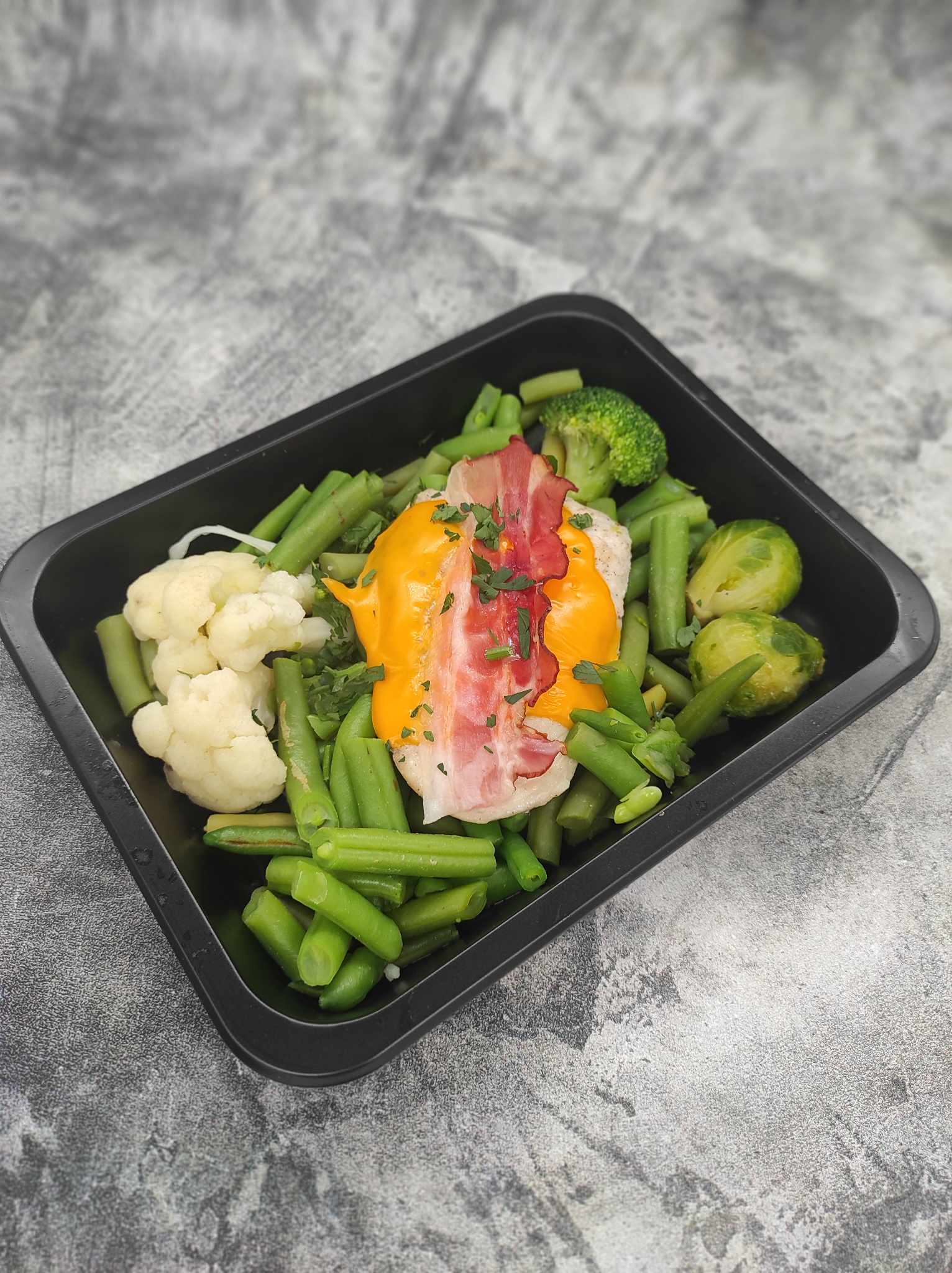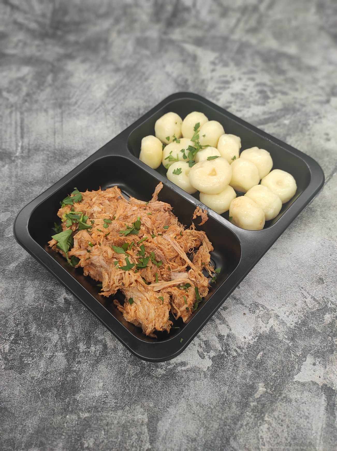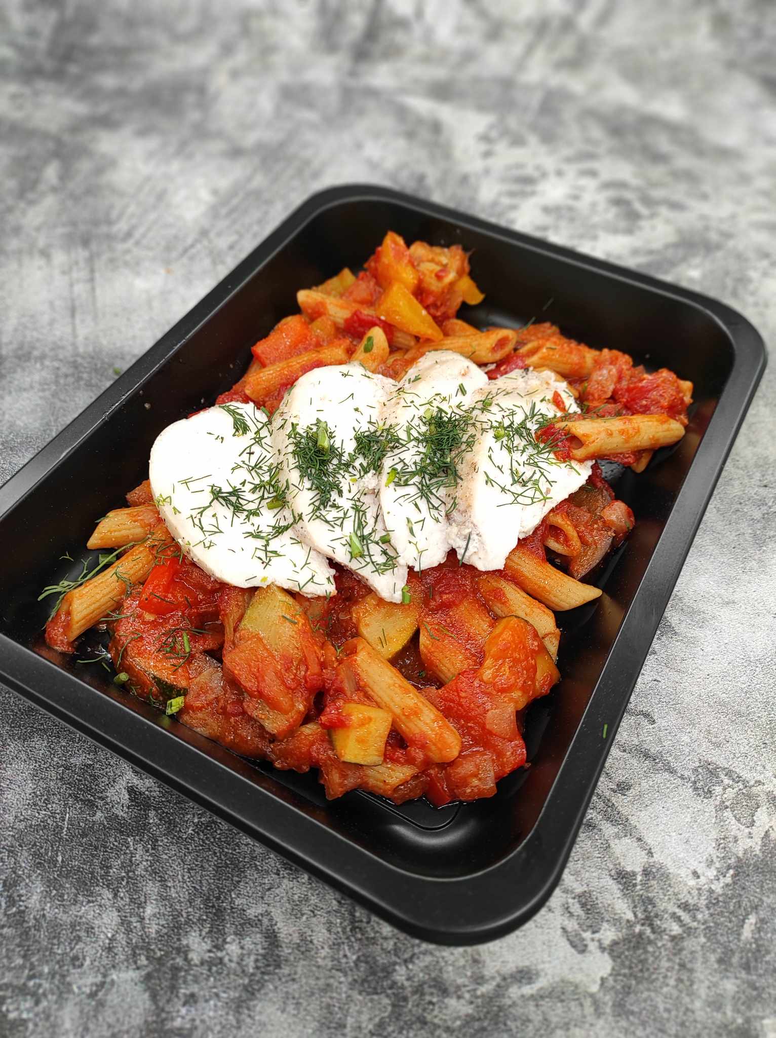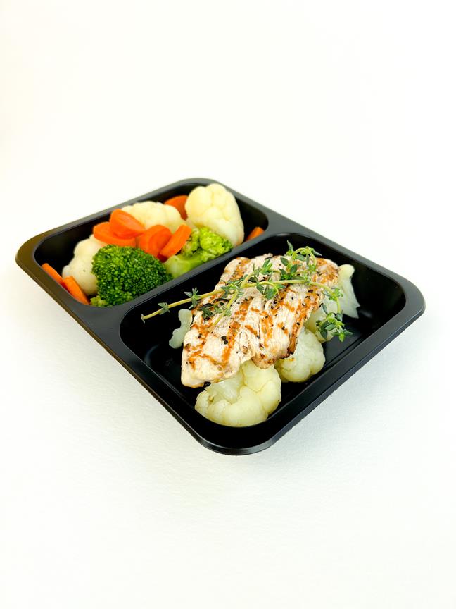 udo z indyka ; zielony groszek ; soczewica czarna ; szpinak ; marchew ; włoszczyzna ; cebula ; czosnek ; mozzarella ; sól