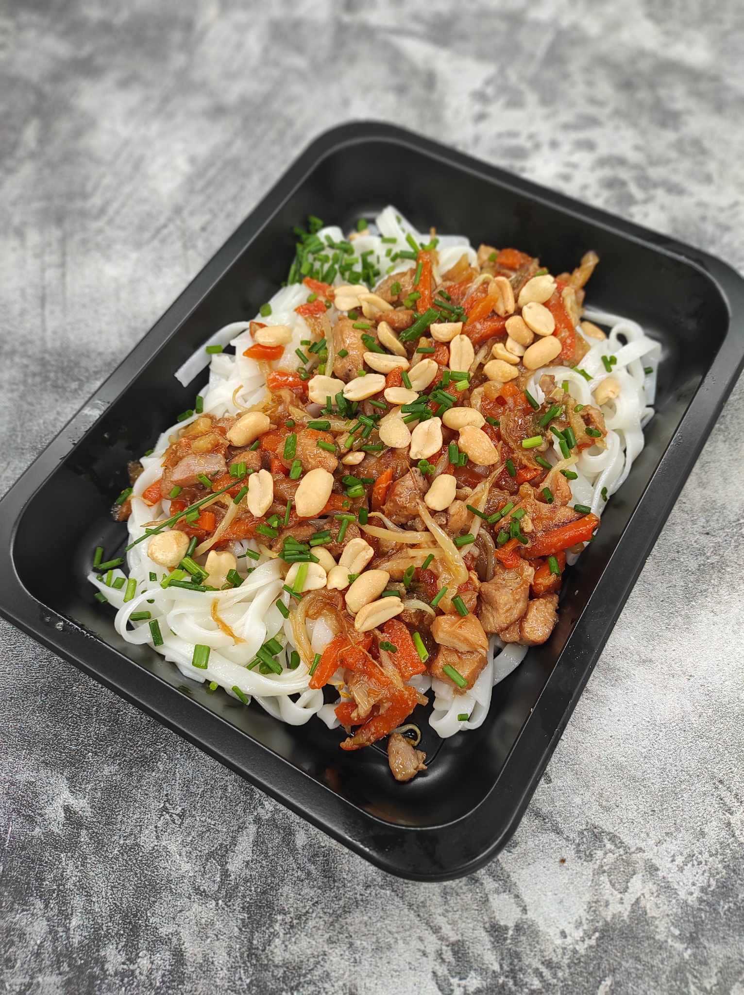 makaron ryżowy ; udziec wołowy ; mieszanka chińska ; woda ; cebula ; grzyby mun ; olej sezamowy ; imbir ; papryka chilli ; skrobia ziemniaczana ; sezam ; kolendrą ; sól