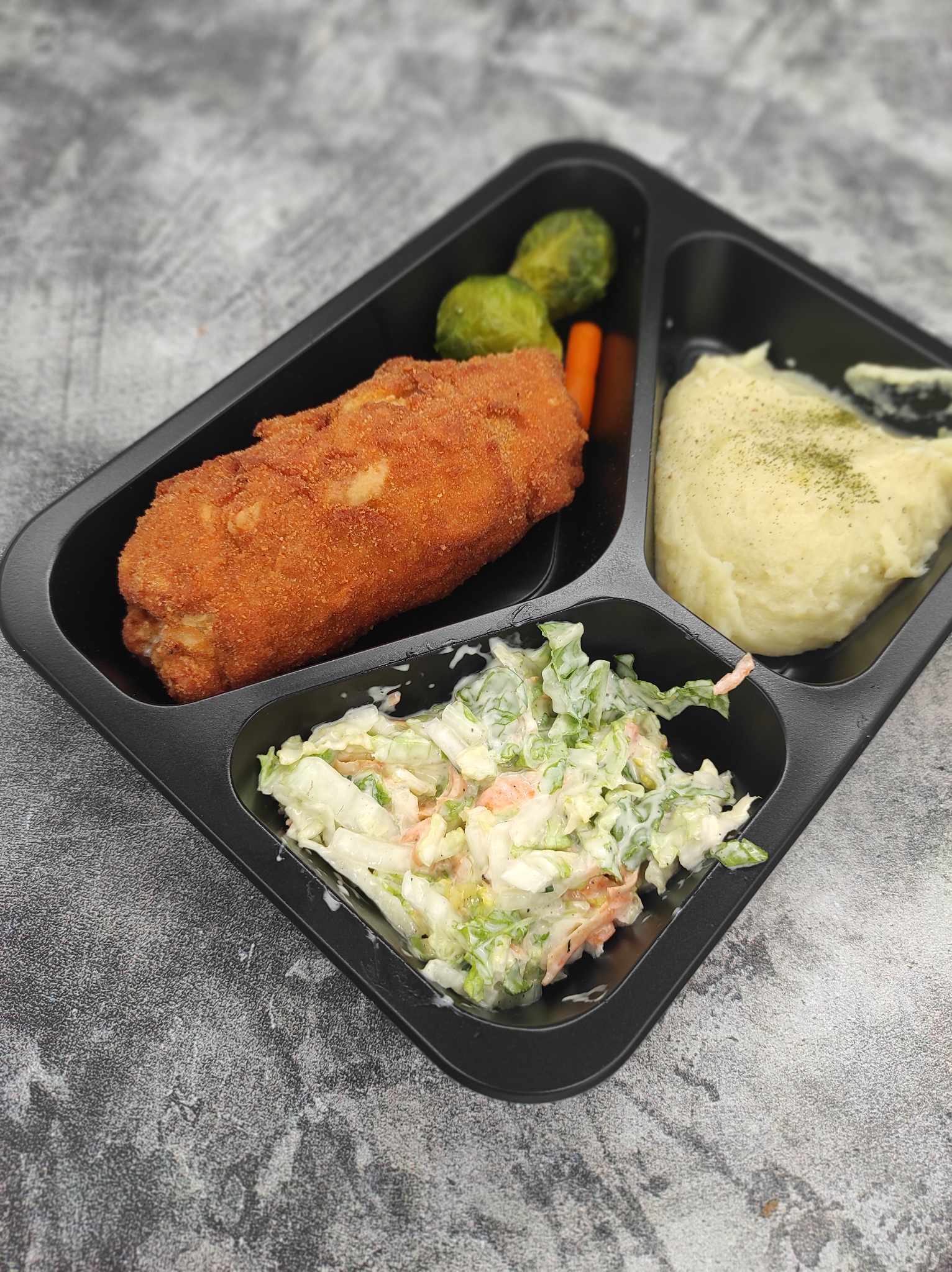 Sznycel z piersi kurczaka, puree ziemniaczane, sałatka z warzyw