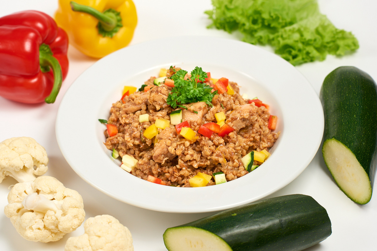 udo z kurczaka ; ryż biały ; cukinia ; papryka ; włoszczyzna ; bakłażan ; cebula czerwona ; czosnek ; sól