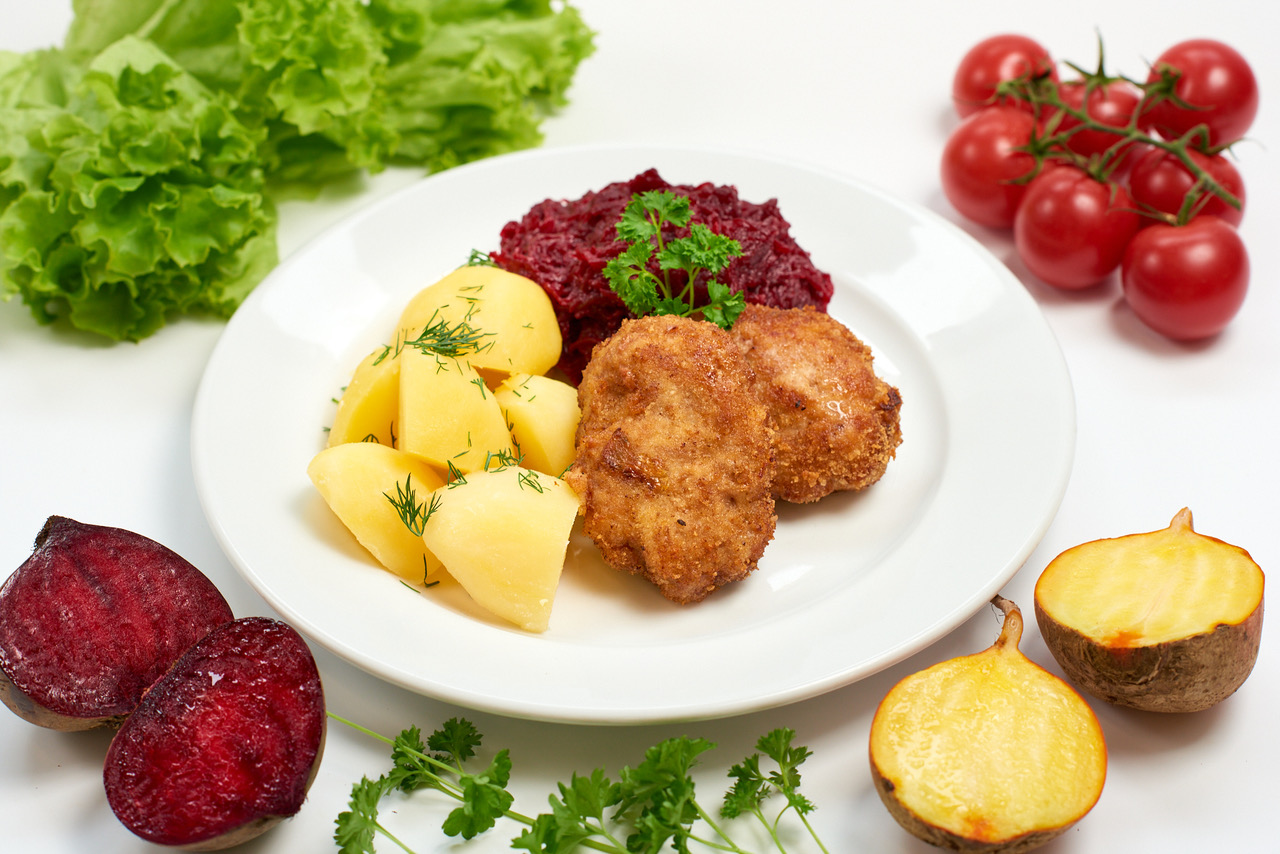 Zrazy wieprzowe ; puree ziemniaczane ; buraki