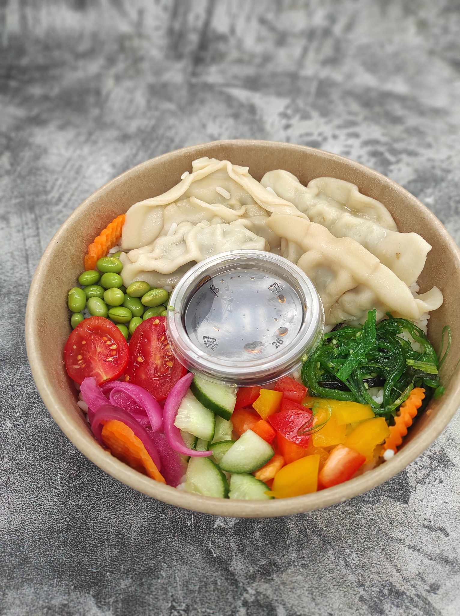 Buddha Bowl z pierożkami z kurczakiem i grzybami
